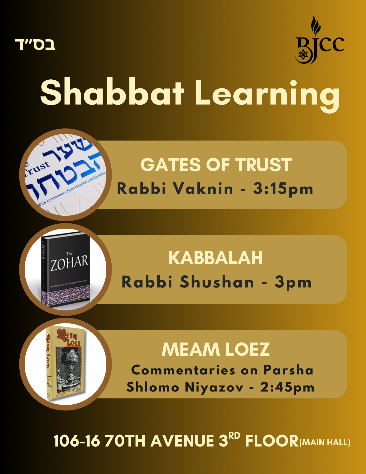 Tap into the power of Torah learning on Shabbat — where one hour of study is said to equal 1,000 hours during the week. Join us every Shabbat afternoon for a meaningful learning experience in a warm and welcoming environment at BJCC. Choose the class you want.